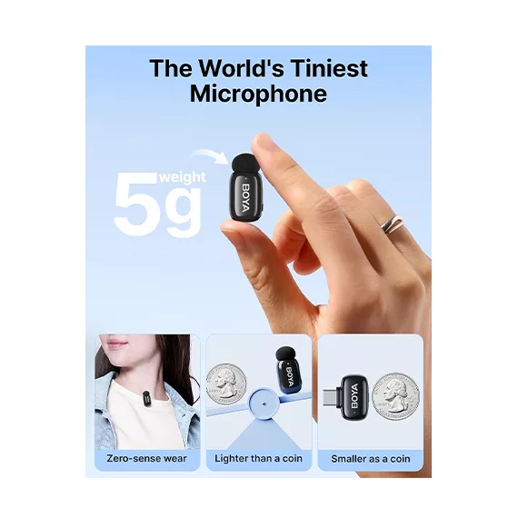 میکروفون بی سیم یقه ای بویا مدل BOYA MINI 23 یک محصول حرفهای و سبک برای تولیدکنندگان محتوا، استریمرها و کسانی است که به صدای باکیفیت و انتقال بدون حواسپرتی نیاز دارند. این میکروفون با وزن فقط 5 گرم برای هر فرستنده، بسیار سبک و قابل حمل است و به راحتی داخل جیب یا روی لباس شما قابل نصب میباشد.