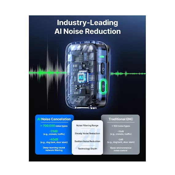 حذف نویز AI با عمق 40dB، کنترل لمسی، ذخیرهسازی داخلی 8 گیگابایت، پشتیبانی از چند گیرنده، شارژدهی بالا