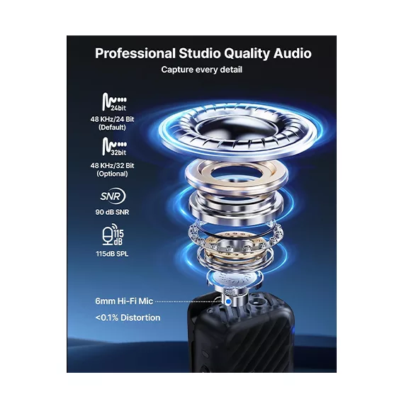 کیفیت صدای این میکروفون یقه ای بی سیم بویا مدل BOYAMIC2-01 از نوع استودیو است با دقت 32 بیت فلوات و نسبت سیگنال به نویز بالا به میزان 90 دسیبل، که امکان ضبط هر جزئیات صوتی حتی در تغییرات شدید ولوم را به صورت شفاف و بدون نویز فراهم میکند. صداهای شما با استفاده از قابلیتهای AGC، لیمیتینگ و EQ تنظیم میشود تا در پادکستها، استریمها و فیلمبرداریها صوتی حرفهای و بینقص ارائه دهید.