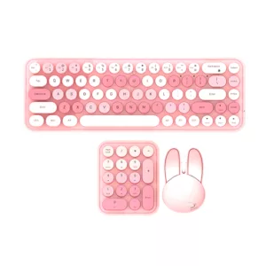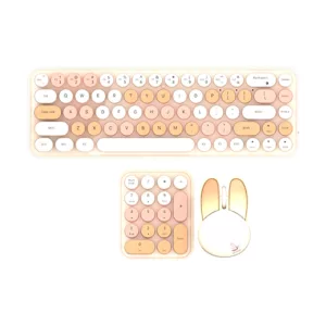 کیبورد این مدل دارای 104 کلید نرم و خوش ساخت با طراحی ارگونومیک است که راحتی حین تایپ طولانی مدت را تضمین میکند. ماوس این ست به شکل گربهای ملوس طراحی شده و با حسگر اپتیکال دقیق با دقت 800 تا 1600 DPI، حرکت روان و کنترل دقیق را فراهم میآورد. عمر باتری این دستگاهها بسیار طولانی بوده و تا 12 ماه میتوانند بدون نیاز به تعویض باتری به کار خود ادامه دهند.
